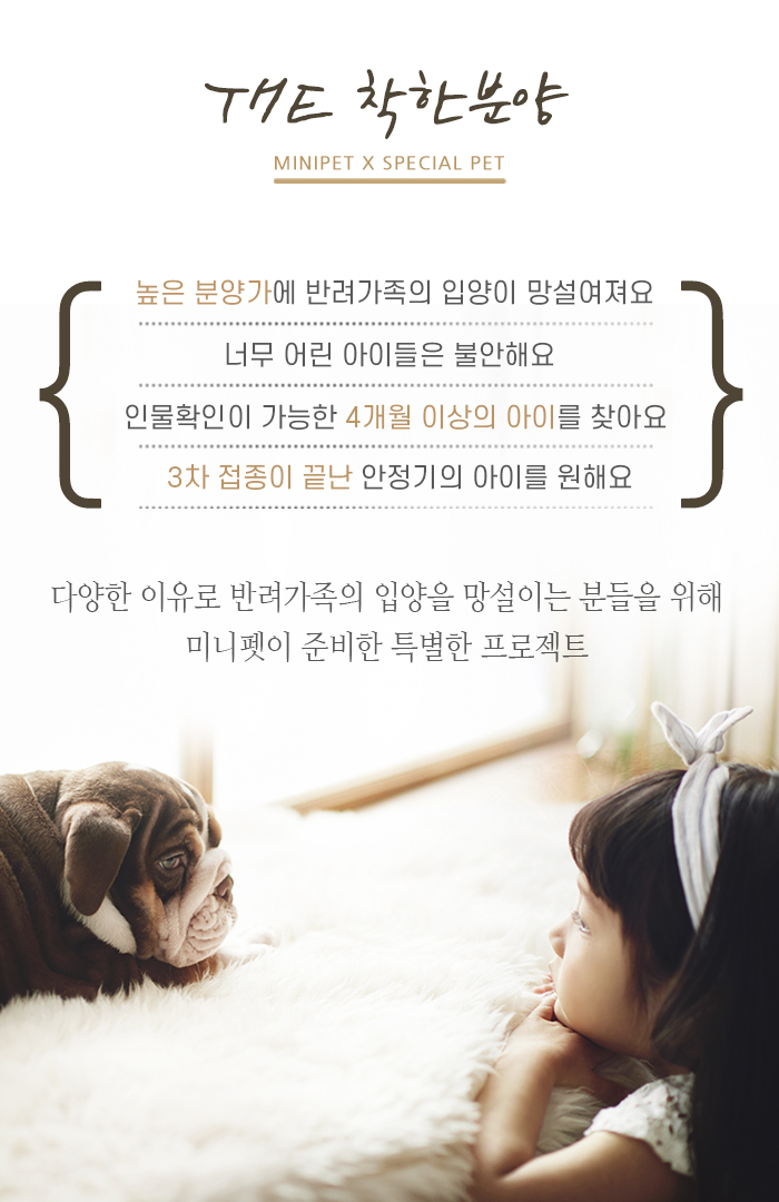 미니펫몰에 입점되어 있는 각 업체의 담당자와 전화 상담 후 방문하시는 고객님께 분양가 할인과 분양 시 필요한 반려동물 용품 차등 제공하여 드립니다.